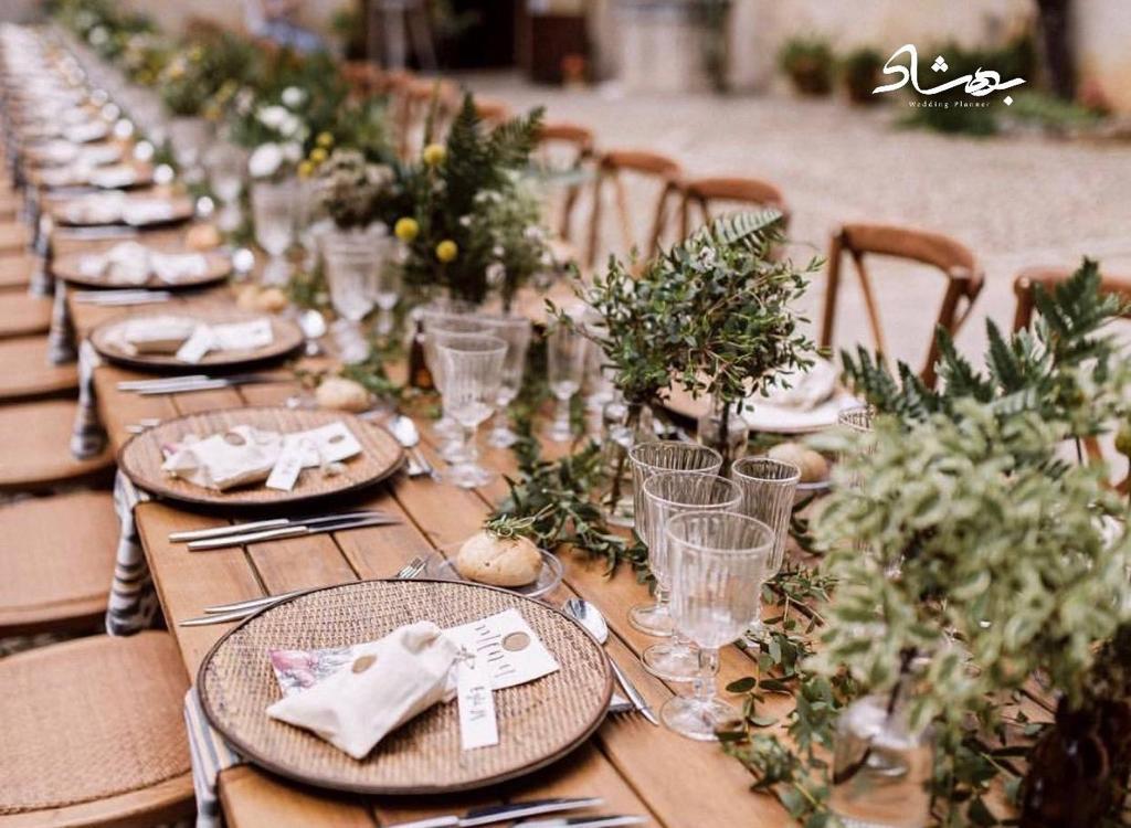 3)اجرای مراسم عقد آریایی در فضای باز و دف نوازان، بال فرشته به همراه عروس و داماد از زمان ورود