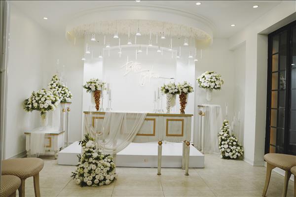 ثبت رسمی ازدواج برگزاری مراسم عقد و نامزدی سالن پذیرایی باظرفیت 70 نفر سفره عقد شیک با گل آرایی به روز عکاس و فیلمبردار داخل مجموعه