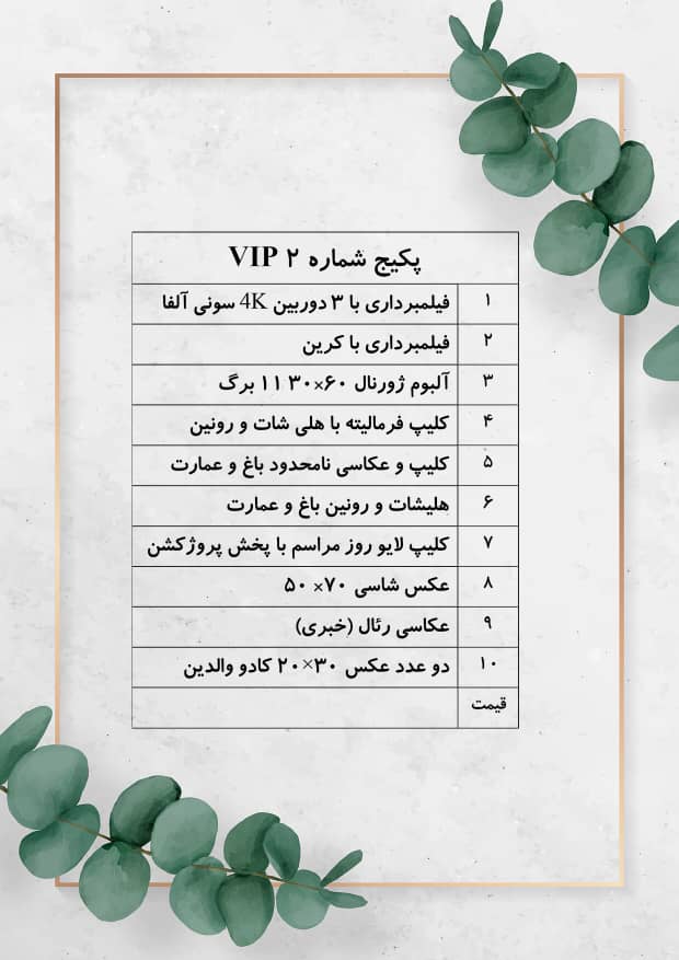 ✔تنوع در پکیجهای عقد و عروسی با قیمتهای اقتصادی وvip.