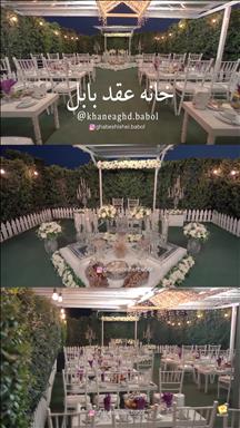 هر آنچه که از یک فضای عقد شیک و لاکچری انتظار دارید در خانه عقد بابل وجود دارد سفره عقد بسیار لاکچری و زیبا در فضای سبز روف گاردن اجرا شده