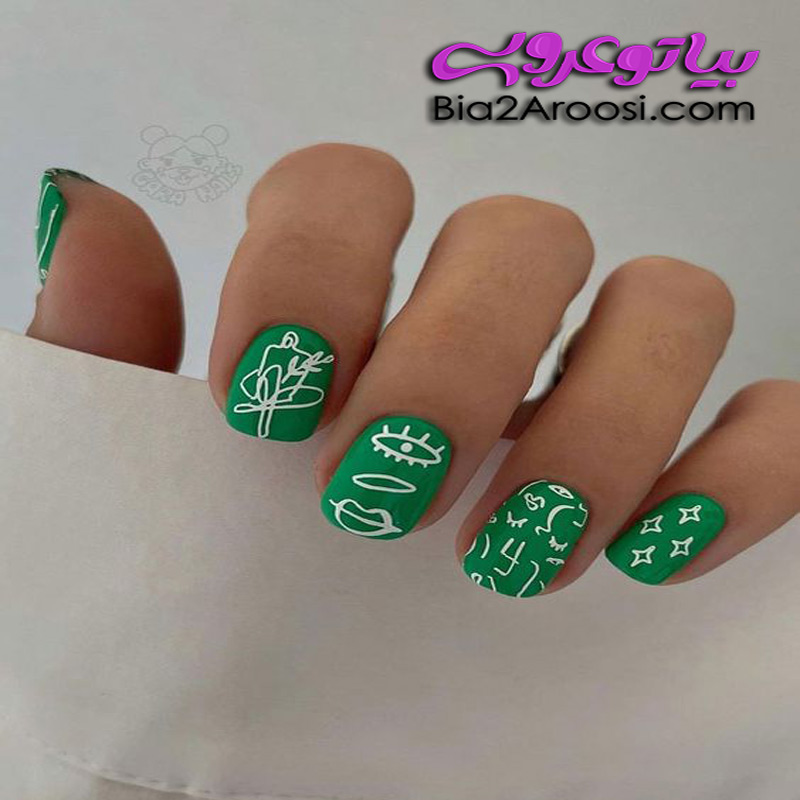رنگ سبز به عنوان یک رنگ سرد، میتواند حس خنکی را به شما منتقل کند. ترندهای طرح ناخن 2023 را اینجا ببینید.