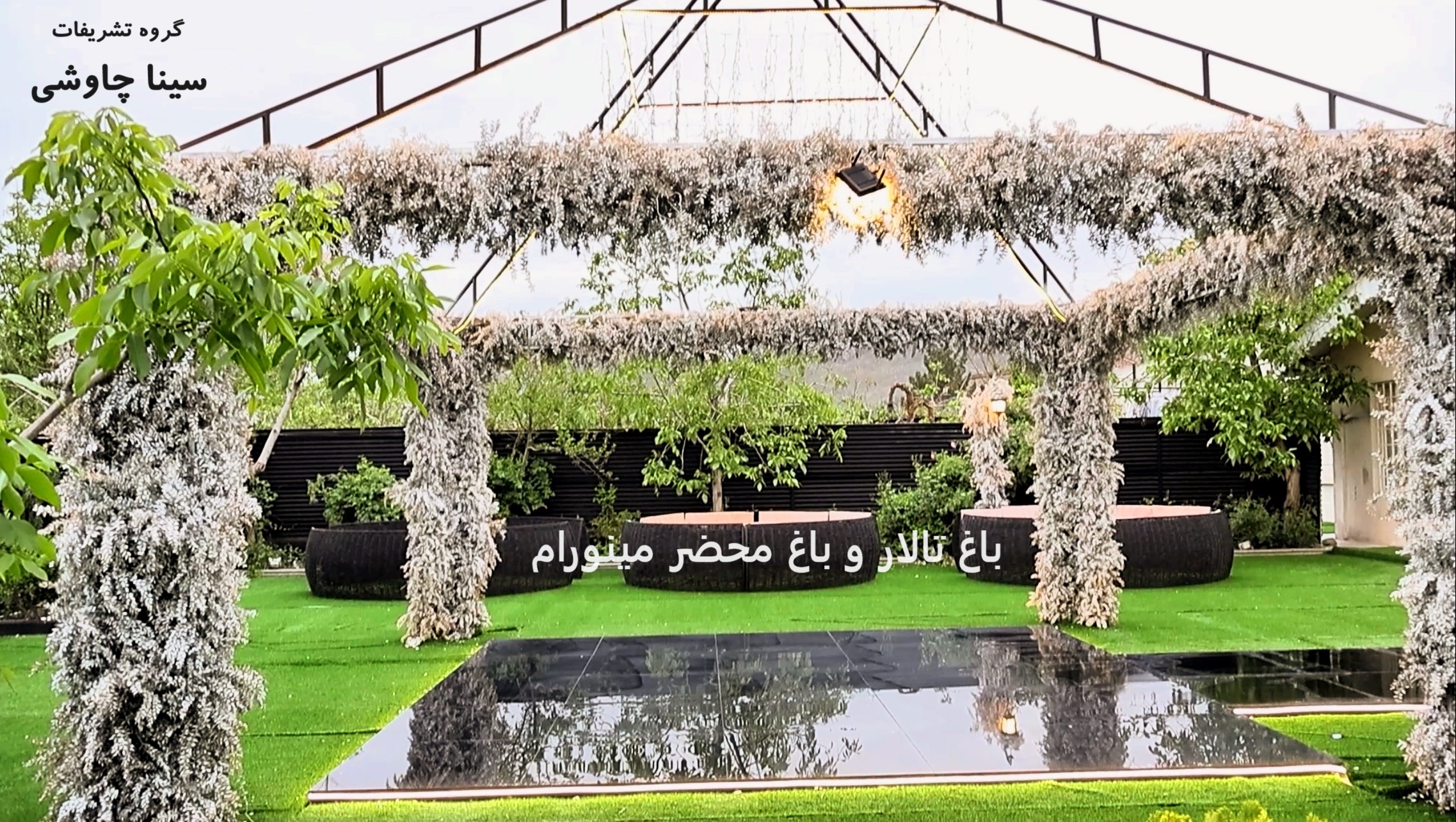 تالار پذیرایی و باغ سرای مینورام شاندیز زیر مجموعه ای از گروه تشریفات سینا چاوشی با ظرفیت زمستانی 500 نفر و تابستانی 800 نفر