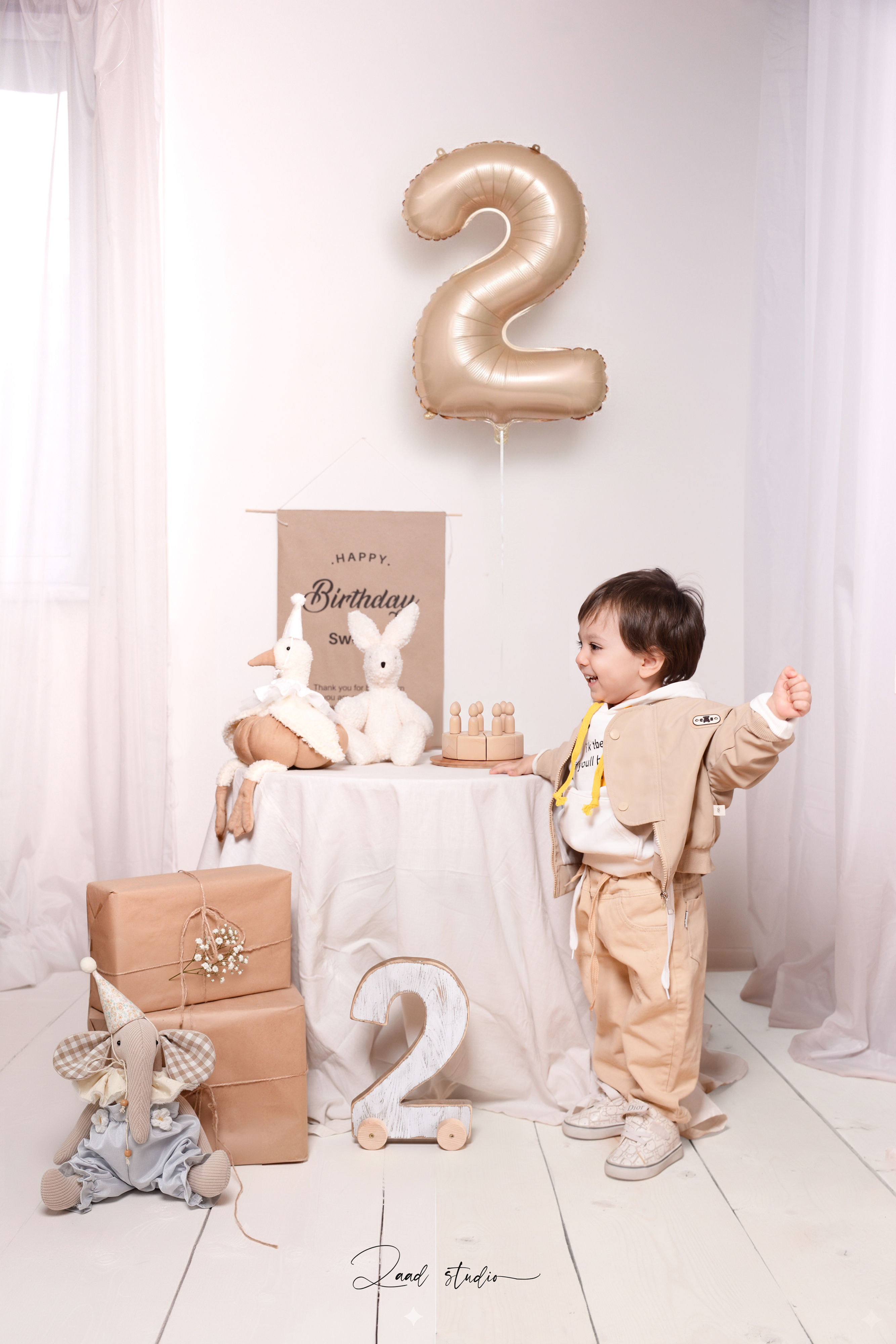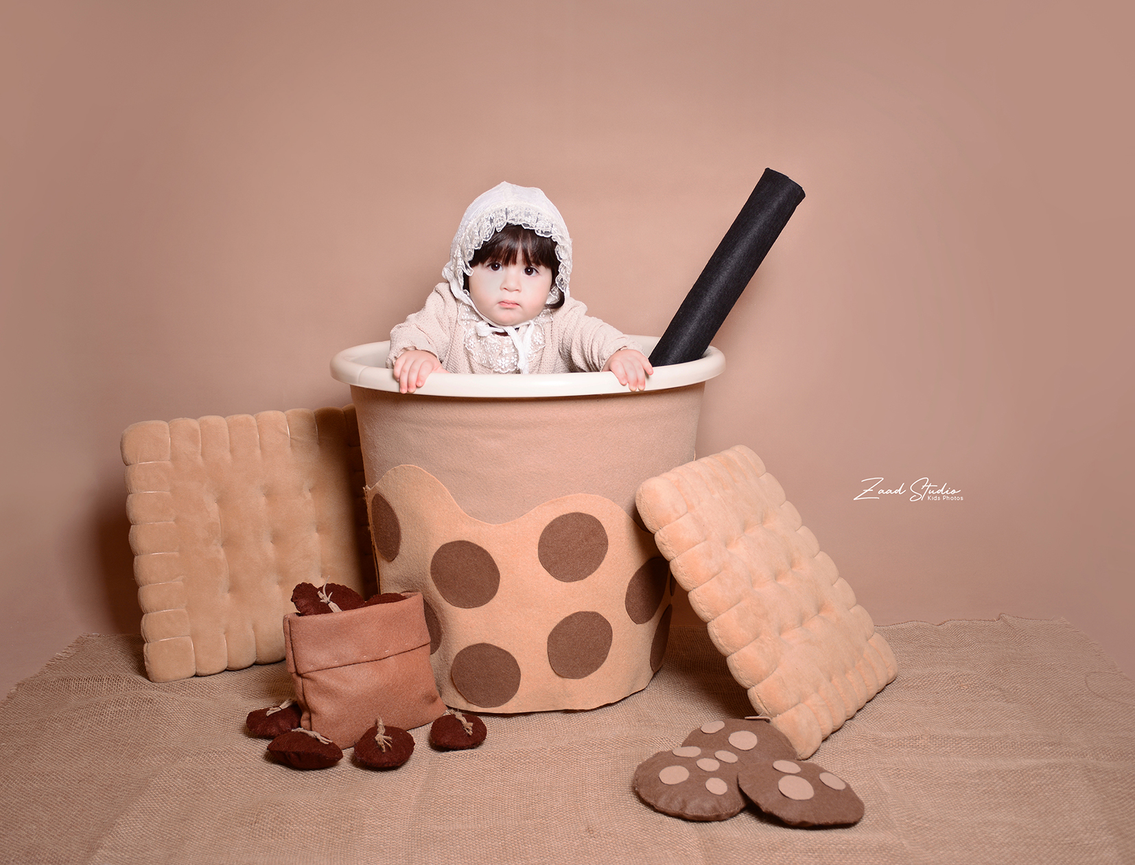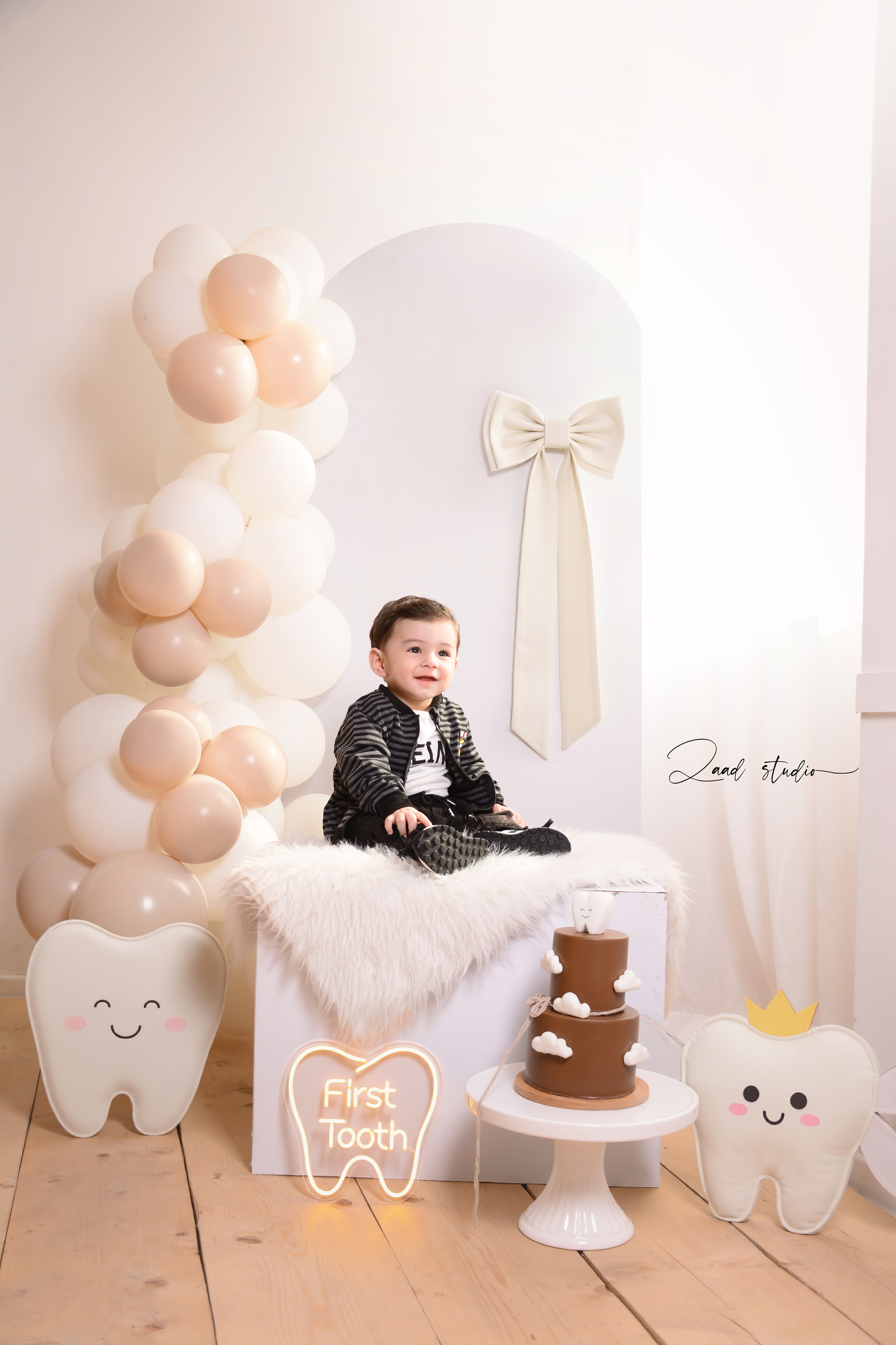 ارائه دکورهای جدید، خاص و مینیمال برای عکاسی نوزاد، ماهگرد، تم دندونی، تولد و مناسبتهای ویژه (نوروز، یلدا، کریسمس و…)، با طراحی تمهای متنوع متناسب با سنین مختلف کودک.